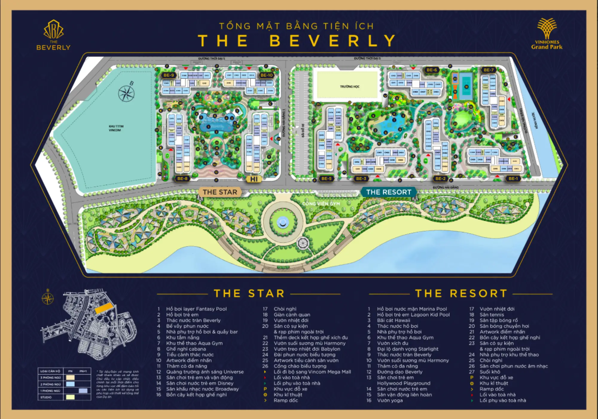 Kiến tạo phong cách sống nghỉ dưỡng thượng lưu kiểu Mỹ, The Beverly sở hữu loạt các tiện ích đẳng cấp. Dưới thềm nhà là hệ thống cảnh quan đậm chất resort, được thiết kế riêng biệt đáp ứng cuộc sống hưởng thụ của cư dân hiện đại