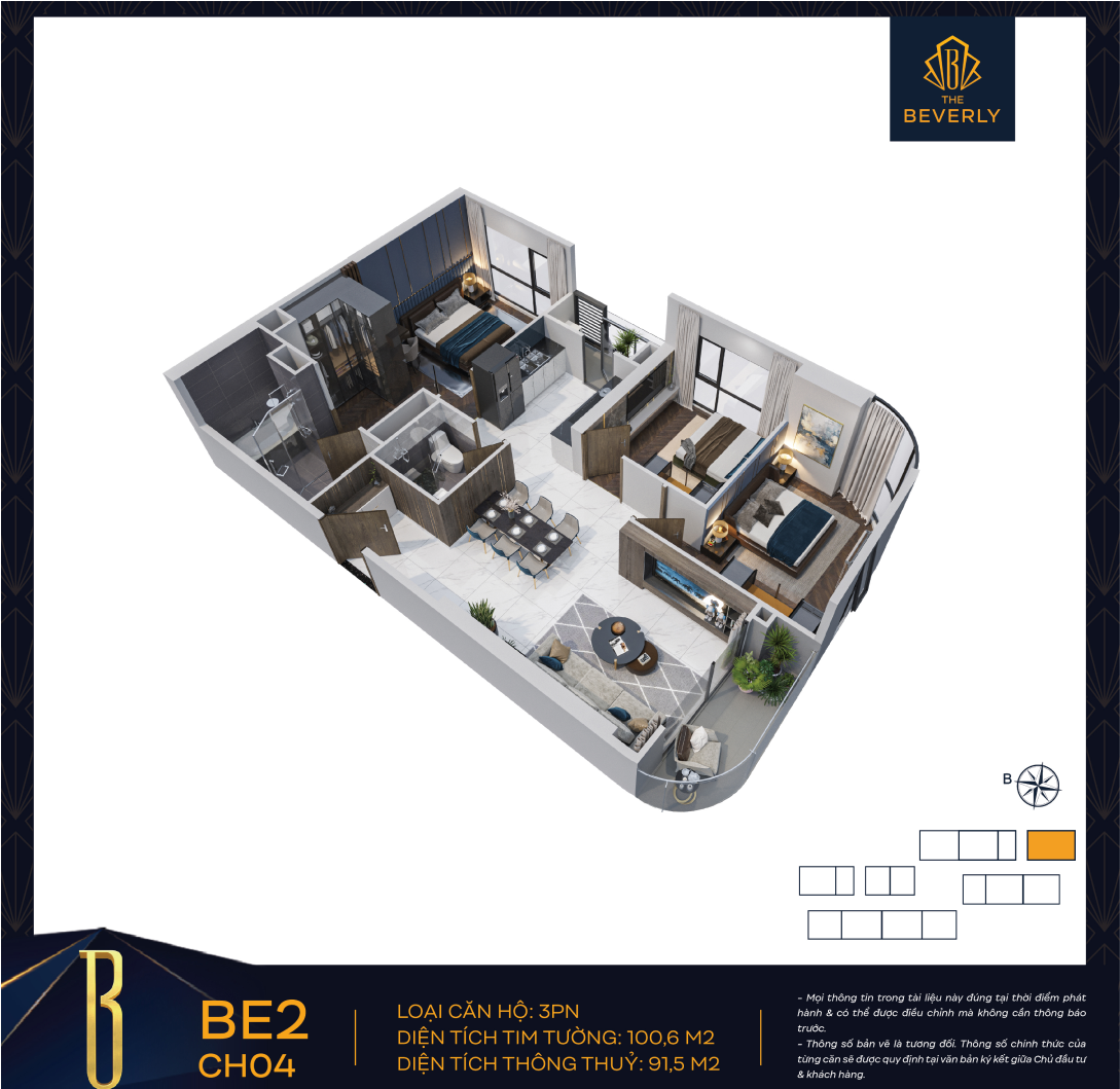 The Beverly sở hữu thiết kế sang trọng, hiện đại và khác biệt nhất trong tất cả các phân khu của Vinhomes Grand Park. Các căn hộ có thiết kế góc bo vòng cung cùng thiết kế full kính chạm sàn giúp tối đa tầm view ôm trọn công viên biển hồ xanh mướt và view sông Đồng Nai ấn tượng, khẳng định đẳng cấp của chủ nhân căn hộ The Beverly.